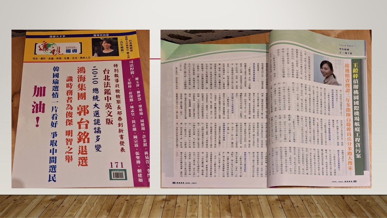 109年擔任檢察官時偵辦桃園機場弊案經透視報導雜誌專文報導